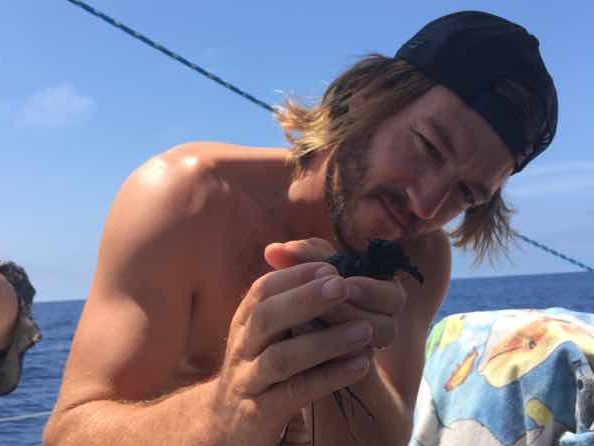 The bird is still with us and Maks is keeping a close eye on her. The conditions today were perfect with very little wind and small waves. We started the day with Mark on the kayak, we both had great expectations on seeing sea life with those great conditions. But as the day progressed and the conditions stayed the same our expectations lowered. By midday, we hadn’t spotted anything but Mark wasn’t empty handed. He had found a fishing pole, a plastic ring (about 10 cm in diameter), a glass bottle and a plastic sole from a shoe. He and I were like a team in a dump truck, he was the driver and spotter and I was the person at the back getting the trash each time he made a stop.