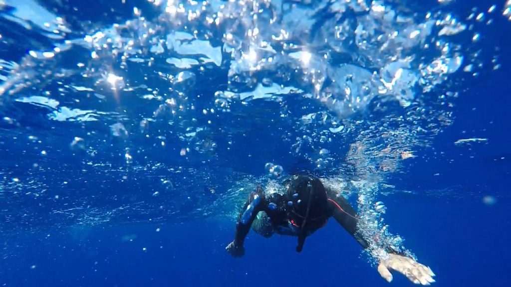I jumped in the water a little later than usual and I got stopped before even starting. Brian and Maks, on the dinghy, noticed that the propeller was acting odd, it was not turning like it used to. From the water, I gave it a quick check and I noticed that the propeller set off its axis.