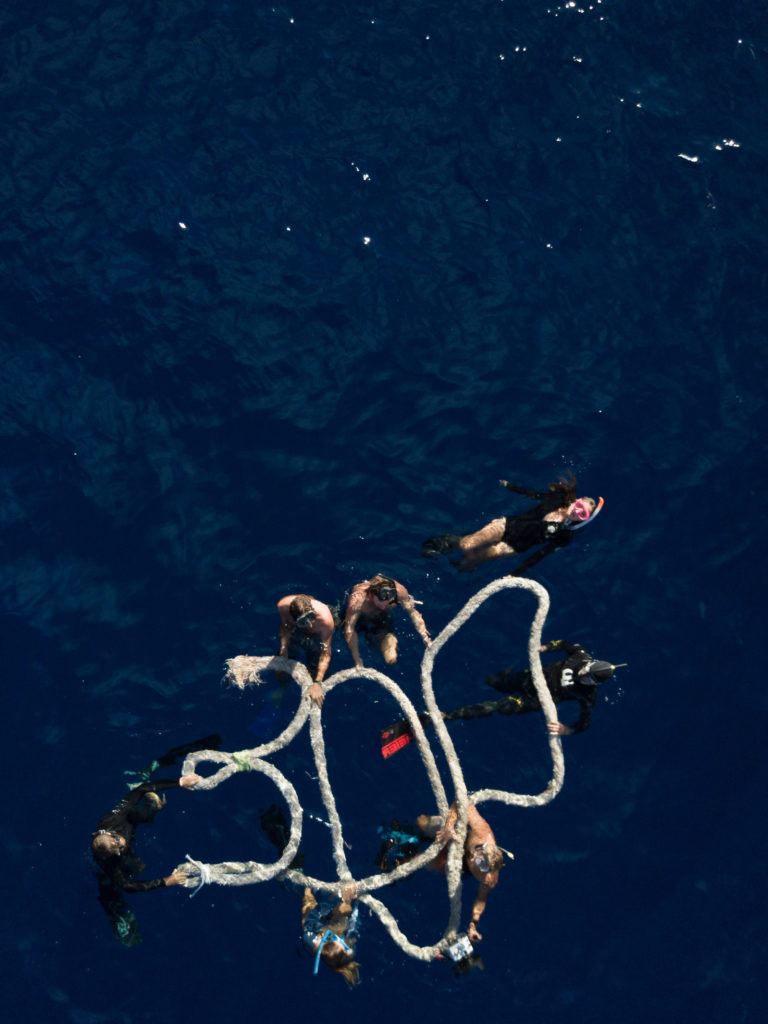 At the end of the day, we set a time to use the drone and capture some footage. I reached my 300 nautical mile mark! The team joined me and we swam in a V formation and formed a large “300” with a thick rope we had found earlier in the day.